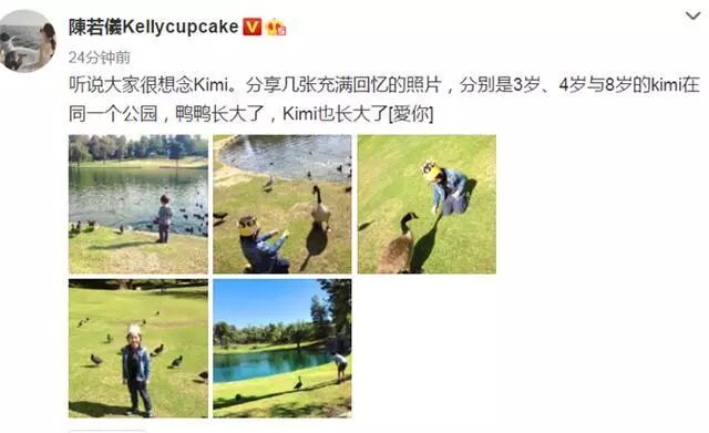 看着组照片里kimi和鸭鸭的对比,真的是变化很大,只是当kimi长大后,鸭鸭不会再继续变大了,反倒显得更小了。现在黑米哥哥已经九岁了,之前过九日的时候,林志颖和陈若仪还邀请了kimi的好朋友们在楼下开了泳池派对,9岁的黑米哥哥继续跟着爸比妈咪环游世界,去了很多地方,出镜的还是只有背影。