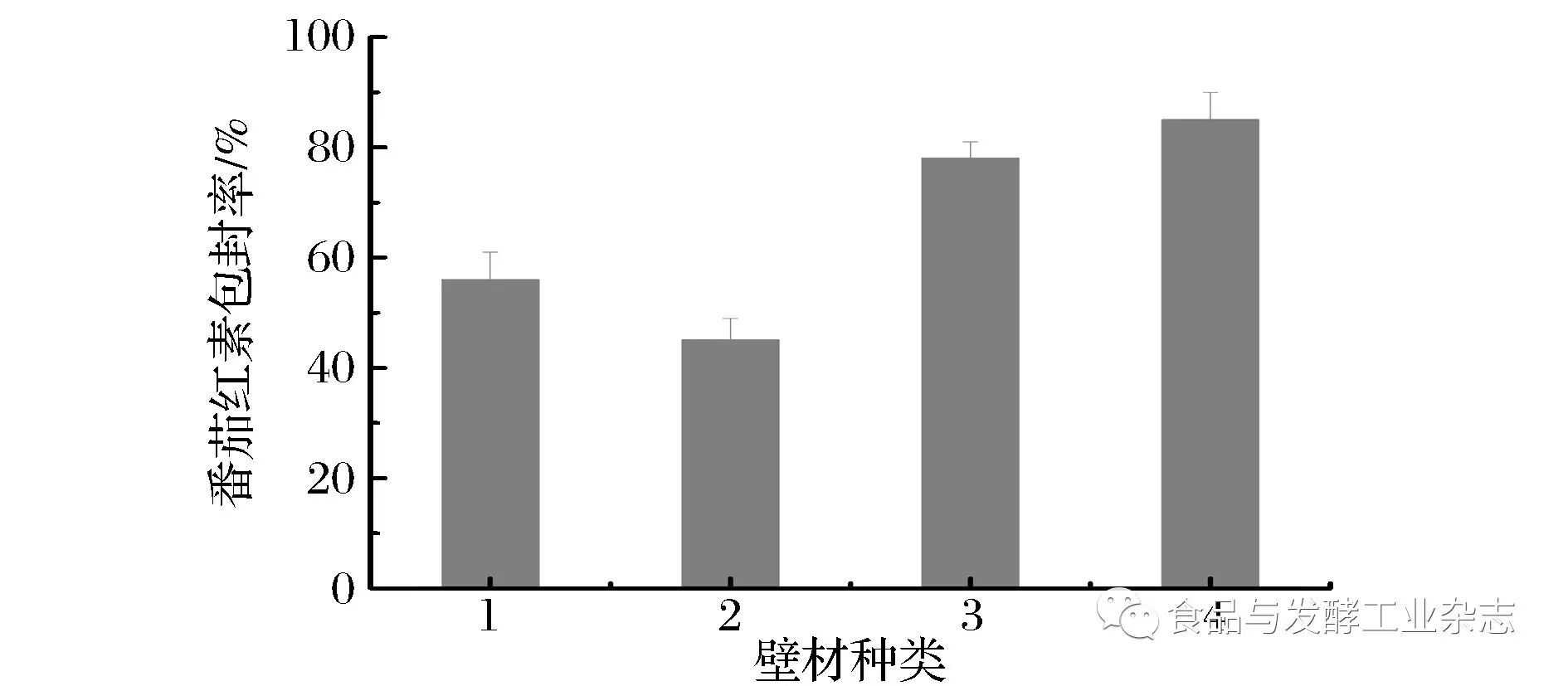 Fig.2 Effect of wall material types on lycopene microencapsulation