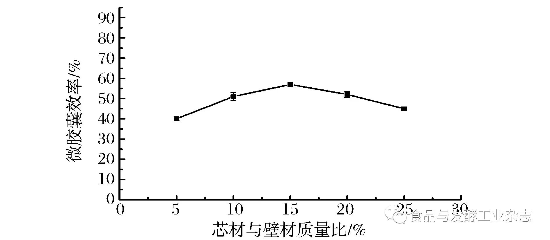 图6 芯材和壁材质量比对番茄红素微胶囊效率的影响