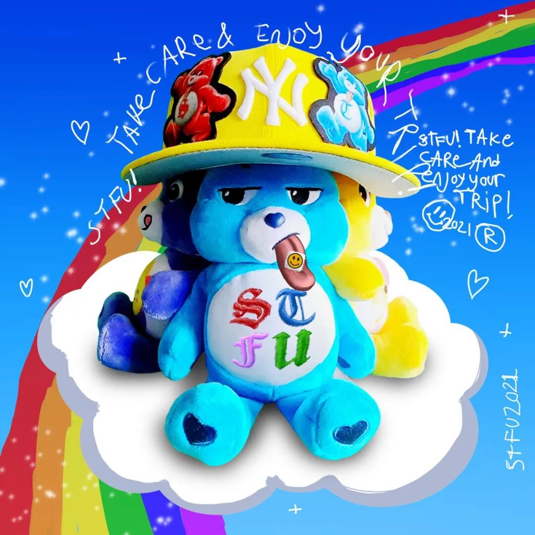 帽子来自纽约艺术家Omi的品牌stfuyoutalk2much