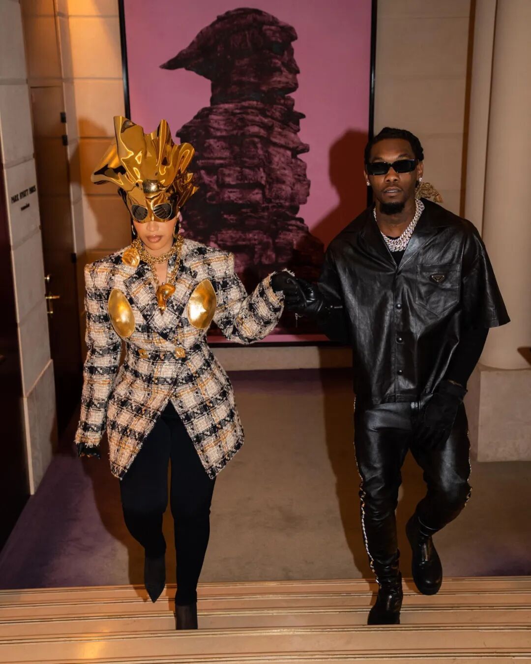 而在穿搭方面,两人的drama属性依旧不改,Cardi B喜爱夸张瞩目的造型,而一旁的Offset时而充当绿叶,时而一起疯。