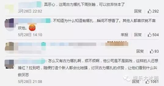 当快乐大本营的观众知道这期节目中有娜扎时,纷纷表示“为什么有娜扎,瞬间不想看了”“公司随便打造一个新人都比她强”。
