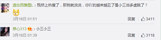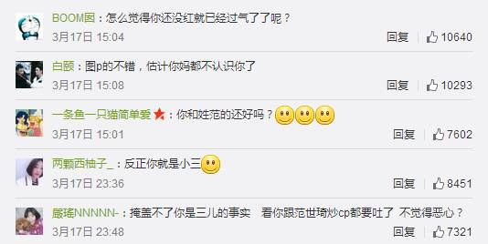 小三这个名声对于女明星来说绝对是挥之不去的噩梦,看看姚笛就知道了。所以张檬估计真心不想扛着这个名声闯天下,直接回复网友声称:丑,是!整容,是!小三,不是!