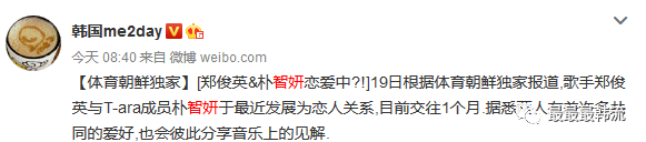 爆料的韩媒在新闻里说的很清楚,郑俊英和朴智妍有很多共同爱好,两人在音乐上互帮互助进而成为了恋人。