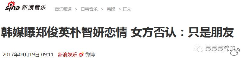 朴智妍方否认恋情后不久,郑俊英所属社也发表了官方立场: