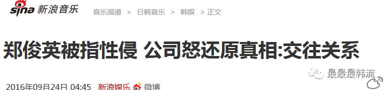 2016年9月,郑俊英被前女友控诉性侵,但经济公司却掀桌表示发生关系的时候两人是男女朋友哪有性侵那回事。