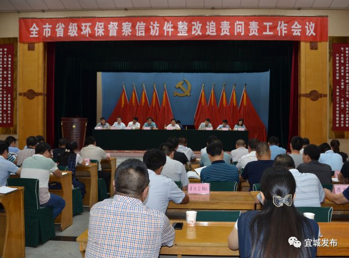 全市省级环保督察信访件整改追责问责工作会在市财培中心会堂召开。