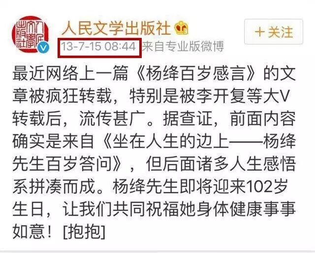 无疑也为“杨绛百岁感言”这个馊鸡汤的刷屏推波助澜。