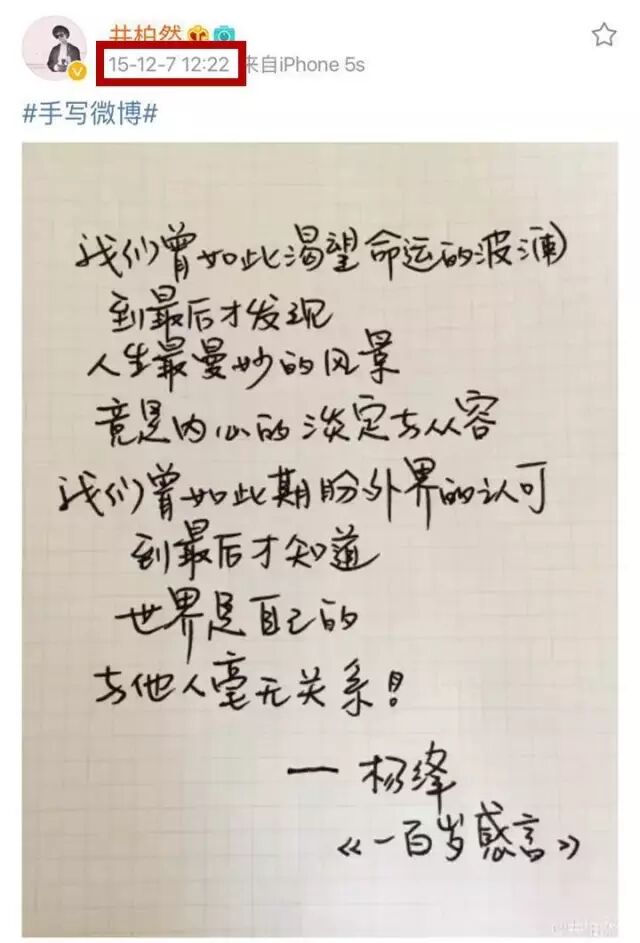 辟谣同时,还在微博发了杨绛先生真实的笔迹。