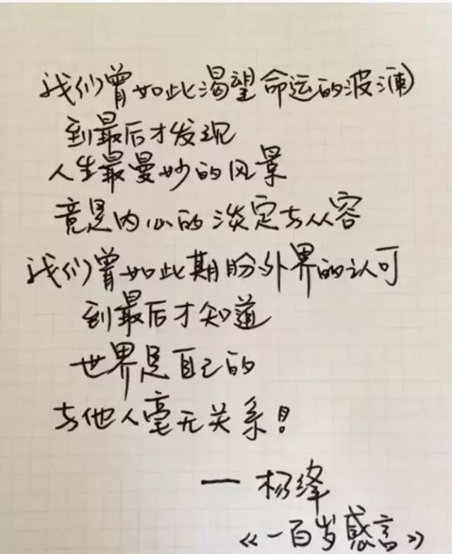 这段话并不是杨绛说的,字也不是杨绛写的,