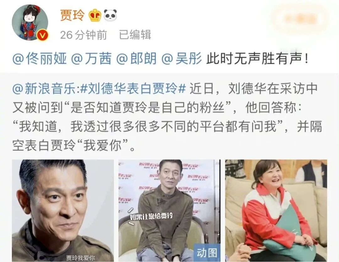这个女演员,她不是刘德华的老婆,但刘德华却向她表白了 InsGirl 港台男星 2021-09-30 19:18:43 859 创作不易,用心坚持,欢迎请BaGua喝几杯爱心咖啡!打赏并支持本文 打赏并删除本文 知道刘德华过生日。贾玲十分用心。她在微博发表生日快乐,并配了一个蛋糕表情,时间点特意卡在20:20。“爱你爱你”这四个数字代表的谐音,不禁让人想起刘德华入驻抖音时,贾玲愣是在几千万粉丝中脱颖而出,成功摘得榜一的位置。拥有五百多万点赞的这条评论,成功地见证了贾玲对刘德华的喜欢,也让大家成功地感受到了贾玲追星道路上,那让人羡慕的不可多得的成功。对于刘德华,贾玲是真的非常喜欢。曾和贾乃亮一起参加节目,贾乃亮看着她说:“听说你是刘德华的超级粉丝啊?”贾玲却一本正经地回答:“我不是我不是,我是刘德华的夫人”。因为喜欢,便自觉地把自己代入夫人的位置,这是贾玲十分开心的事情,而让她十分开心的事情,也不只这一次。有一回,节目组把她的照片拿出来让大家猜,贾玲看到后立马支招说:“你可以直接问问是不是刘德华的妻子?”把自己的照片,比作刘德华的妻子,对于刘德华,贾玲喜欢的十分张扬,以致总是会忍不住幻想自己是刘德华的另一半,以致恨不得让全世界都知道,她是刘德华的头号大粉丝。对于刘德华,同时她也喜欢的十分纯净又美好,以致总会小心翼翼地保护好自己的那份喜欢。和沈腾、杨迪一起参加节目,节目组放出她和刘德华一组的题目,被贾玲猜到后竟立马开心的像个孩子,兴奋地差点跳起来,在节目现场激动大喊:“我竟然和刘德华都成一题了?”有刘德华的地方,贾玲总是会显得异常活跃和兴奋,当然她也不免会有伤心和无奈。与范丞丞、周深参加节目,节目组放出刘德华的《练习》让大家猜,然而在听了半天后,贾玲都没有猜出来。这一刻,她再也不像平常一样,处处绽放着自己开心傲娇的小表情,而是非常痛苦自责地甩自己耳光:“华子,对不起,我不配爱你。”没能做好刘德华的头号粉丝,贾玲深觉愧疚,好像失了魂一般。不过,即便有时不能做到十全十美,贾玲仍旧真心实意地爱着刘德华,若是跟刘德华没有合作,哪怕合个影,她也会非常开心。贾玲喜欢刘德华后,贾玲的好友们都忍不住来帮忙撮合两人。参加《青春环游记》时,周深为了给贾玲一个惊喜,特地模仿刘德华,表演他的经典曲目《练习》。杨迪则模仿刘德华的《恭喜发财》,就连节目组导演为了让贾玲和刘德华同框,都在时刻努力着。贾玲公司的员工表演小品,也会表示在贾玲面前说刘德华,不能直接称呼刘德华,而是得喊姐夫。为了见到刘德华,贾玲和她的亲朋好友可谓是使出了浑身解数,然而在两人一起参加金鸡奖闭幕式时,却还是遗憾终究没有见到。参加金鸡奖,贾玲携手《你好,李焕英》剧组亮相,刘德华携手《人潮汹涌》剧组亮相,可是在同一个空间出现的两人,可惜却没缘分碰上。于是,贾玲伤心欲绝,发微博称:“自行车没坐上,华子也没见到,如果能重来......”此时,贾玲本就郁闷难受,不料佟丽娅却忍不住向她炫耀自己的追星成功,她在评论区,评论贾玲自己和刘德华的合影。好友朗朗也向贾玲分享刘德华合影:“玲姐,我替你握了下手”。这样的举动,果然被贾玲赤裸裸羡慕说:“别洗手,这就去找你。”见到刘德华前,贾玲被朋友努力撮合,也被朋友调侃炫耀,当然,她还被朋友真心为她着想。就在全网为她的追星事业操心时,老搭档沈腾参加金鸡奖闭幕式,路过刘德华的休息室时,特地将门上贴的刘德华名牌小心翼翼撕下来,叠好准备送给她。为了能让贾玲见到刘德华,大家都在主动地贡献着自己的一份力量。功夫不负有心人,很快,贾玲就收到了刘德华的亲自回复。俗话说:念念不忘,必有回响。在贾玲追星刘德华惊动全网时,刘德华也通过各大平台知道了自己的超级大迷妹贾玲。《拆弹专家2》做宣传时,记者问刘德华:“金鸡电影节的时候,沈腾把您休息室的名牌撕下来送给贾玲了,您知道吗?”刘德华回答:“我知道我知道,我有看。”记者又问:“在《拆弹专家2》里,安排一个角色,您觉得她适合演什么?”刘德华立马正襟危坐,非常正式地邀请贾玲:“贾玲,我爱你,你可以演我夫人!”追星追到让偶像直接邀请自己来演夫人,贾玲多年称自己是刘德华夫人的言论,终于要成为现实。这次,终于轮到她开始炫耀,她发微博称:“此时无声胜有声”,并向曾经向她炫耀的佟丽娅、万茜、朗朗一个个喊话。更甜蜜的,当知道贾玲拍了电影《你好,李焕英》,被问到和贾玲的合作时,刘德华回答:“我还是那句话,贾玲我爱你,我现在就等她嘛,她现在当导演了,所以希望她想到一个剧本,要我咋样就咋样。”追星刘德华26年,从前都是贾玲追着刘德华跑,然而现在,终于刘德华也注意到了贾玲。刚喜欢刘德华的时候,贾玲只是一个正在上中学的普通中学生。1995年,刘德华一曲《忘情水》在春晚表演,大放异彩、红遍全球、吸引无数迷妹迷弟时,也同时吸引了在家里观看电视的贾玲。一场节目走进尾声时,贾玲便无可救药地爱上了刘德华。但是真正见到刘德华,并顺利跟刘德华合上影,贾玲却等了整整二十年。2015年,她和瞿颖、沙溢、李菁合作小品《喜乐街》,其中“女神女汉子”的T台秀表演风光无限,深得大家喜欢时,贾玲心里想的却是,如何才能见到刘德华,如何才能跟刘德华顺利合影。为了这一场遇见,她也的