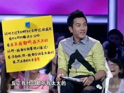 在《非诚勿扰》台上,几乎“三句话不离杨幂”,“反正我什么都听我太太的”、“只要是我太太的样子,我都喜欢,我太太满身都是优点”、“我和太太在一起生活都是很自然、很舒服的状态,可能根本就没有去想过什么是迁就。”