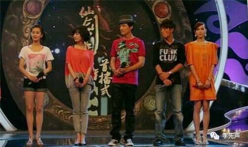 仙剑三首播时,刘诗诗,杨幂,胡歌,霍建华和唐嫣的合照。