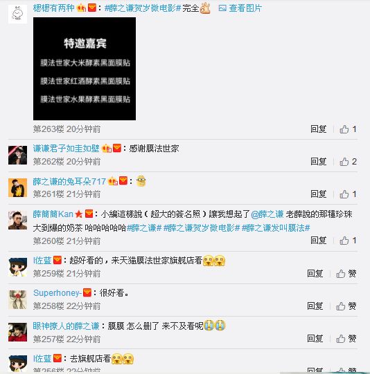 薛之谦的粉丝有正能量、爱看电影、爱时尚,从这三个维度出发,膜法世家举行了一次又一次营销活动。每次活动都强调以粉丝群为主,品牌软性露出。既传达品牌特性,达到良好的造势效果,又让消费者感到创意满满、乐趣十足。