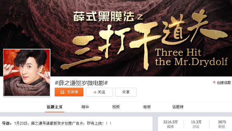 #薛之谦贺岁微电影#的话题在微博上达到超过3500万阅读量,影片预告也在网络上刷起一波热潮。