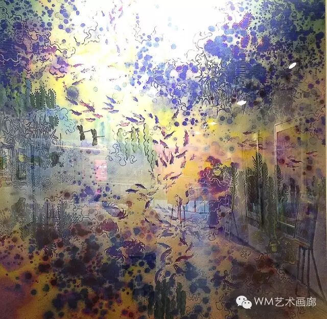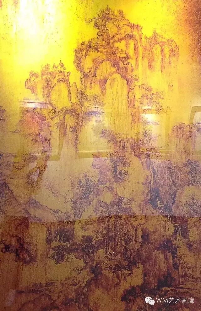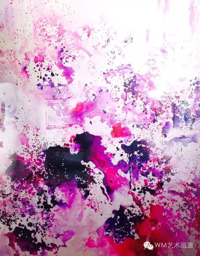 此系列作品有一个很重要的特点就是水媒介的运用。原作品中油画的厚重和水彩的轻盈共存,用色简介而强烈,白色颜料和稀释的重色各分出层次,偶然的效果都在整体的控制之中。而此作品在真丝上呈现的特别的光泽,更增加了它的丰富视觉效果。