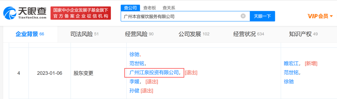 其中,知名歌手胡海泉持股的广州江泉投资有限公司(下称“江泉投资”)退出了本宫餐饮股东序列,不再持有后者股份。