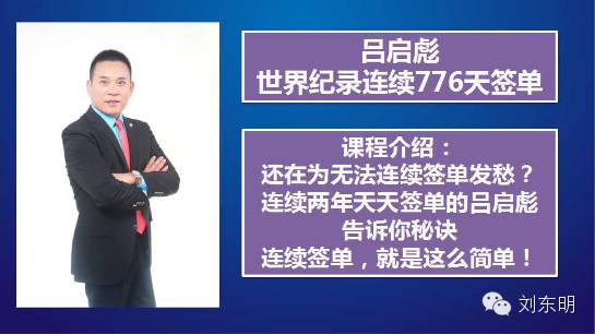 创造了连续776天签单记录的——吕启彪,为保险精英们不能连续签单的苦恼解疑答惑,告诉大家连续两年签单的独家秘诀,点通保险精英的签单神经。
