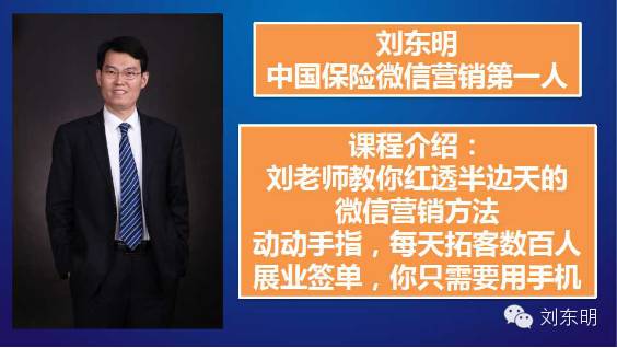 中国保险微信营销第一人——刘东明,为保险精英分析最前沿的微信营销方式,教你怎样快速把握微信营销技巧,动动手指就签大单!