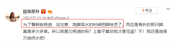 就连匪我思存也为了看新版杨逍,不小心烫了脚▼▼▼