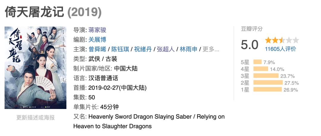 新版《倚天屠龙记》播了,不出意外地,成绩并不理想▼▼▼