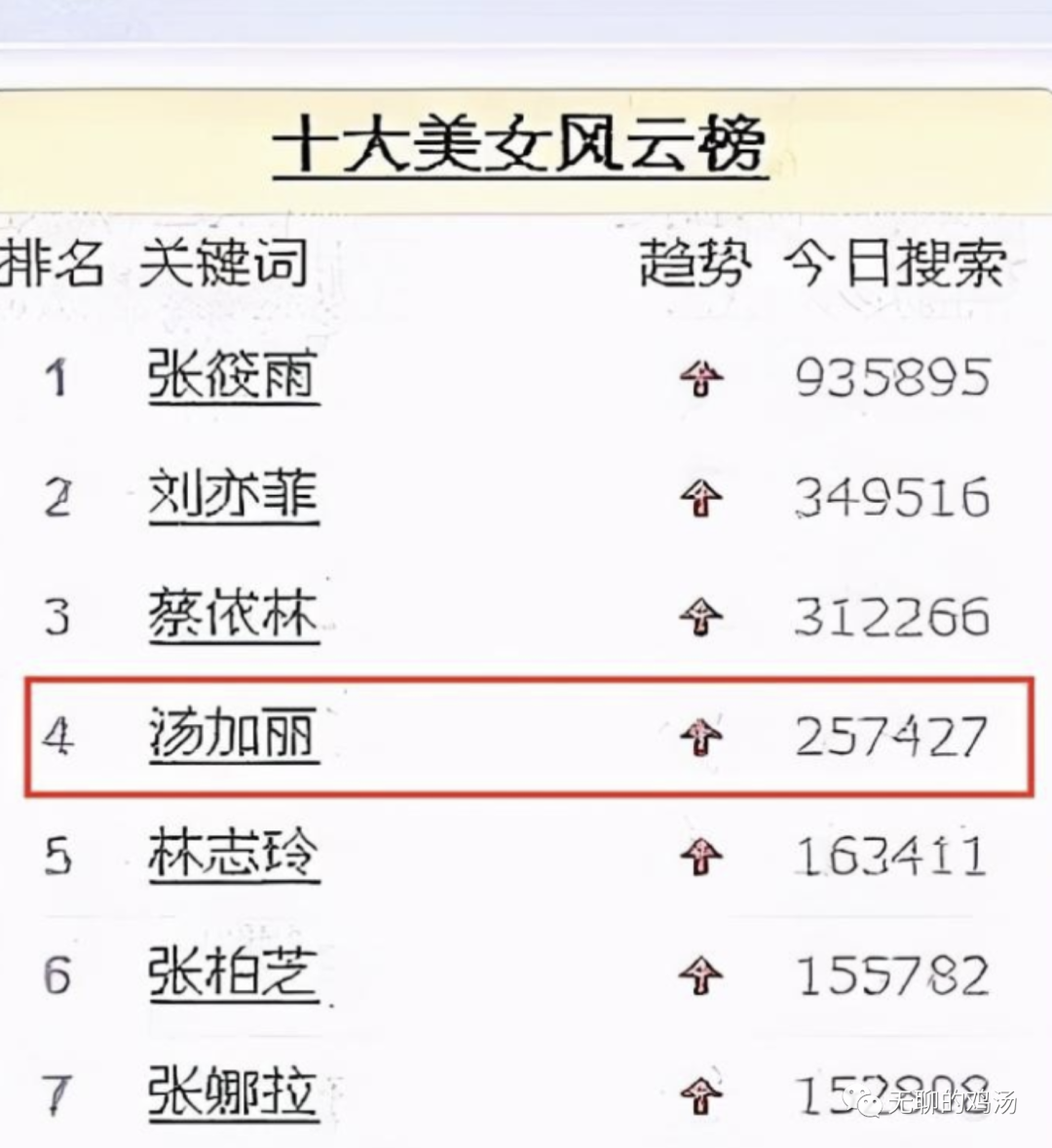 那时网络远没有如今这么发达,但是汤加丽这个名字的搜索,竟然达到了日搜10万次,总量2亿次的惊人记录,不得不说汤加丽真的火了。