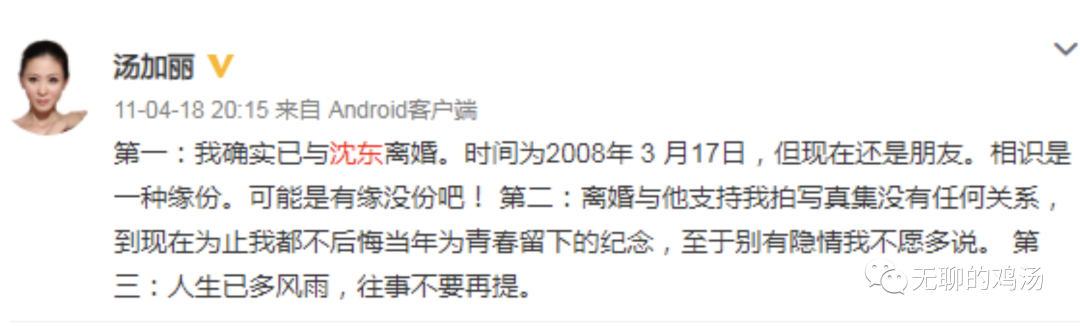 但是她的感情生活,却在当初和沈东离婚之后,画上了暂停符,一直都毫无波澜。