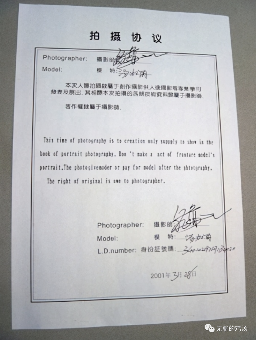 两人签订了拍摄协议,汤加丽将成为张旭龙镜头里的人体模特。