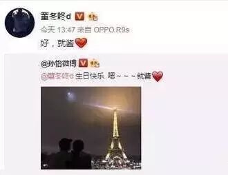 年轻人的恋爱就是直来直往,被拍到两天后董子健微博发照片公布恋情,配文也是甜蜜的肉麻:“怎么办我被套牢了”