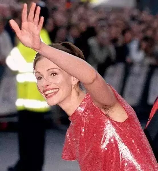 1999年,电影《诺丁山》首映式上,茱莉亚·罗伯茨在红毯上露出腋毛。打破了90年代末期,好莱坞流行的“无毛”准则。