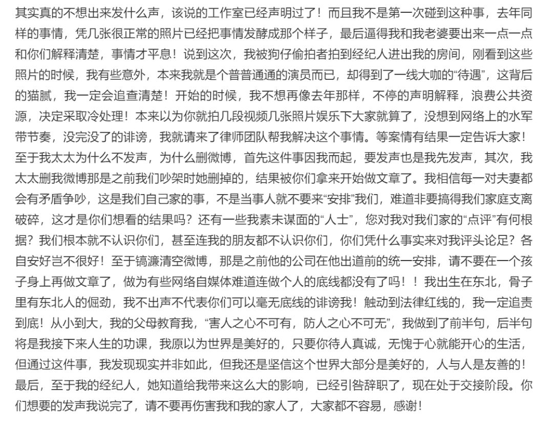 之前他通过工作室发声,似乎网友并不买账。所以这次干脆亲自发文,把最近的种种争议都解答了一遍。