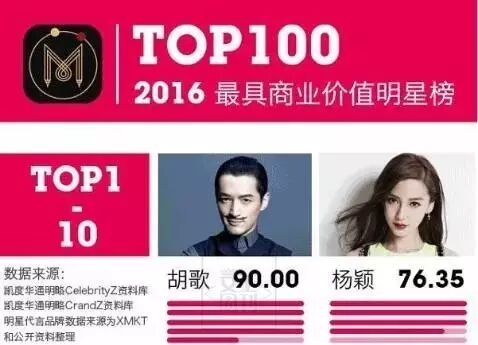 去年年底我专门看了腾讯娱乐白皮书,关于2016年,最具商业价值的明星排行榜。