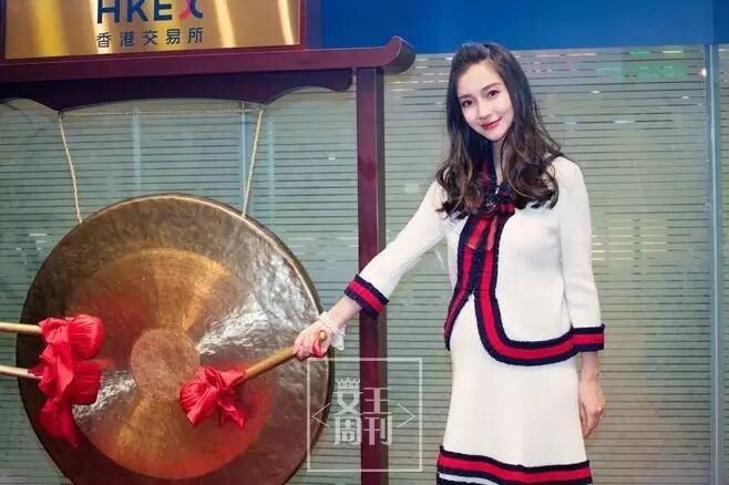 终于到八个多月显怀了,baby给代言的企业上市站台敲钟,依然美得像个小公主: