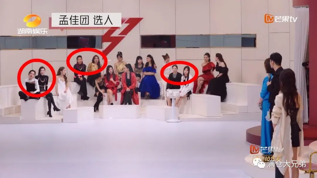 虽然在孟佳站起来选人时,大家纷纷躲避她的目光,但如图所示,此时李斯丹妮、王丽坤、袁咏琳、吴昕、金晨和张含韵都在看着她。