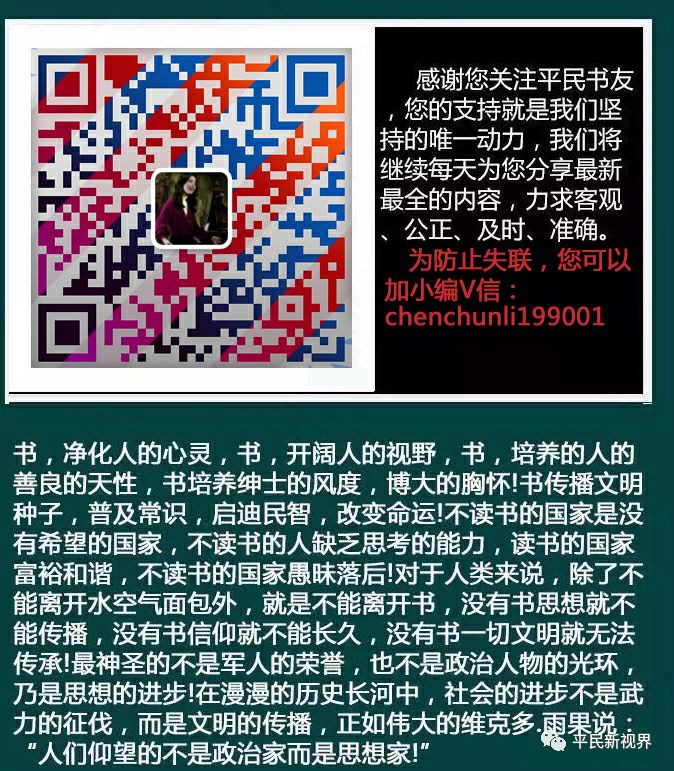 黎明前的黑暗,春暖前的严寒,你懂得……如果您认同我们的观点,可加小编微信chenchunli199001,以防止失联(负能量爆棚,忠党爱国之士勿加),每天为您分享更多精彩内容