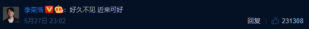 饱受相思之苦的李荣浩,就在杨丞琳的美照微博下评论:“好久不见 近来可好”