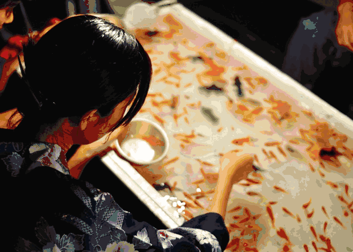 很多摊位会有和风小游戏哦,比如我们所熟知的捞金鱼、捞乌龟、水气球、套圈圈、投球投标……还可以买到一些和风面具、折扇、风铃。