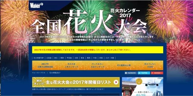 当然还有很多很多花火大会,想要去看的小伙伴可以提前前往,官网www.hanabi.walkerplus.com/kaisai,进行查询哦。