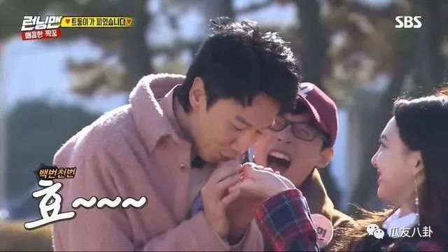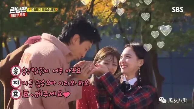 以前女团TWICE担任嘉宾时,成员娜琏当时用「宋智孝」做三行诗,说到「孝」时娜琏叫光洙帮她吹吹手指,他立刻春风满面捉着娜琏双手。