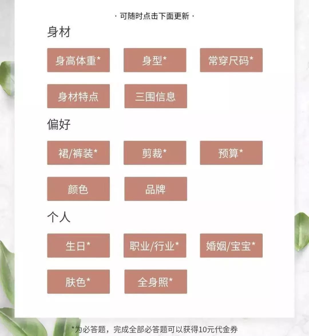 因为是专属搭配,所以需要详细地填自己的身材三围,算好预算,平时的生活照发过去更容易搭配到适合自己的嗷。