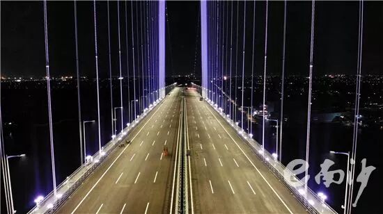 3月19日傍晚6点许,华灯初上,正在调试的南沙大桥(虎门二桥)项目灯光瞬间点亮,给人以视觉冲击,仿佛一条刚刚苏醒的巨龙。记者在现场看到,由于处于调试阶段,7点左右灯光又暗了下来,直至7点许重新打开。随着夜幕渐临,灯光也在黑夜中跳跃起来,从空中俯瞰,动静态交替的灯光赋予了大桥新的生命力,其灯带绵延数里,在远处建筑物星点灯光的衬托下显得更加雄伟壮阔。