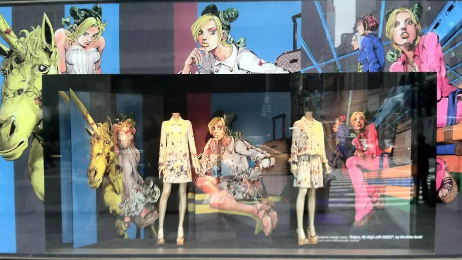 ▲ 二次元角色+三次元商品的尝试是新奇且有趣的体验(图为 GUCCI x 《JOJO》的漫画橱窗,及着用 Louis Viutton 新款包包的 “雷电”)