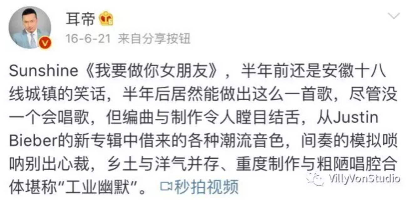乐评人耳帝对《朵蜜》的评价: