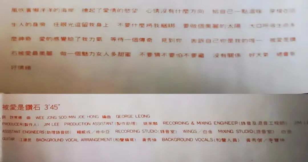 歌词《被爱是钻石》(上图)