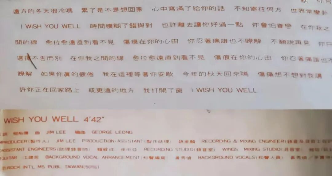歌词《Wish You Well》(上图)