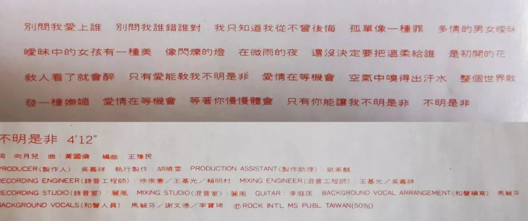 歌词《不明是非》(上图)