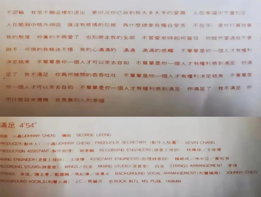歌词《满足》(上图)