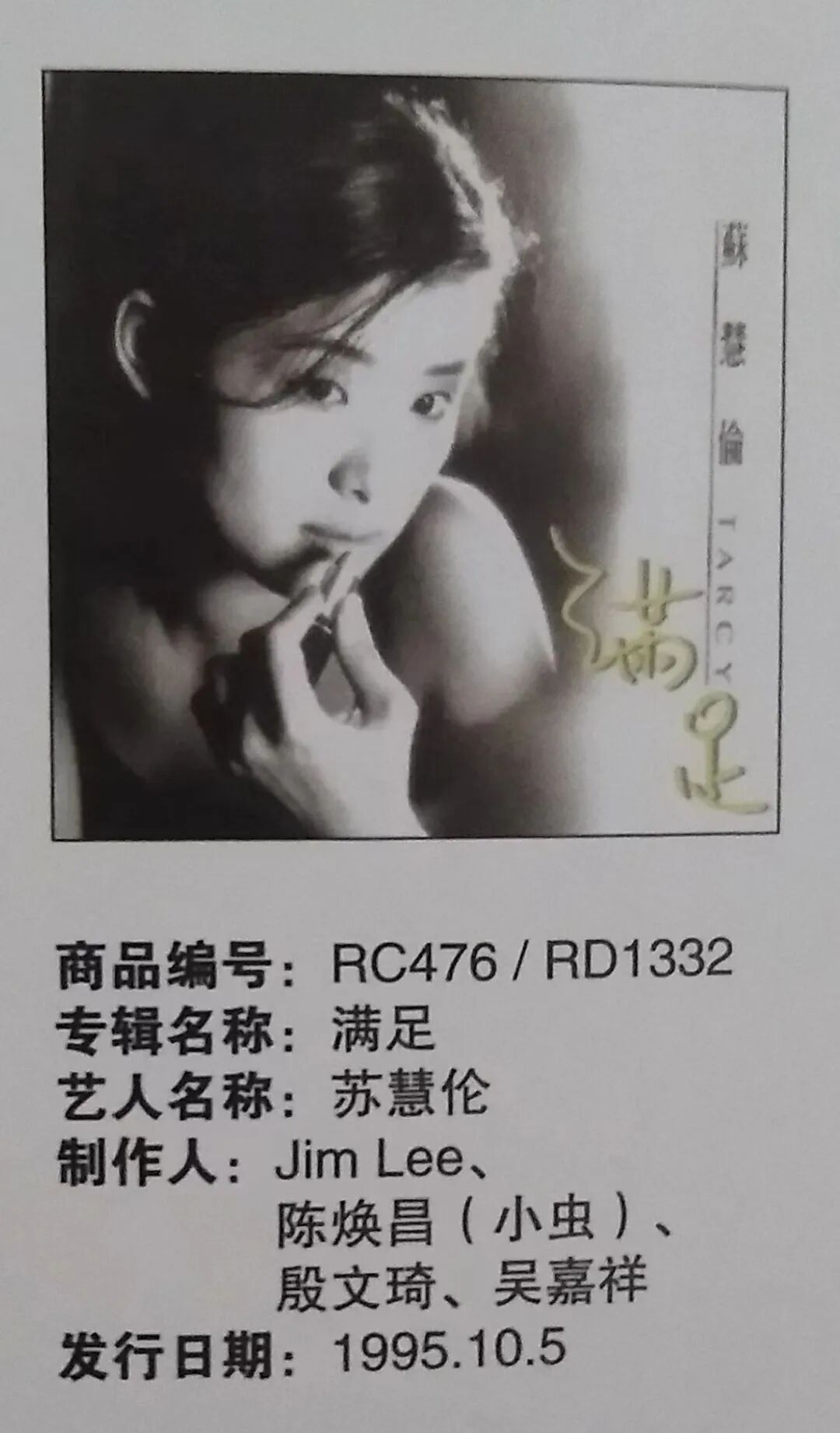 虽然这张专辑《满足》卖的不好,不过本人个人觉得这里面有怨但没有恨,有熟但没有浓,气质上还是统一化的。专辑《满足》封面的灰黑底色,和曲风上的多样让苏慧伦忽然变得立体生动了。当年有一种说法,从《满足》开始,她蜕变成了一个女人,有她爱的欲望,有她的贪心,她开始有了侵略性,也因此有了让人探究更多的吸引力。