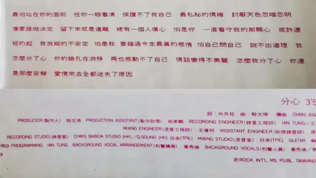 歌词《分心》(上图)