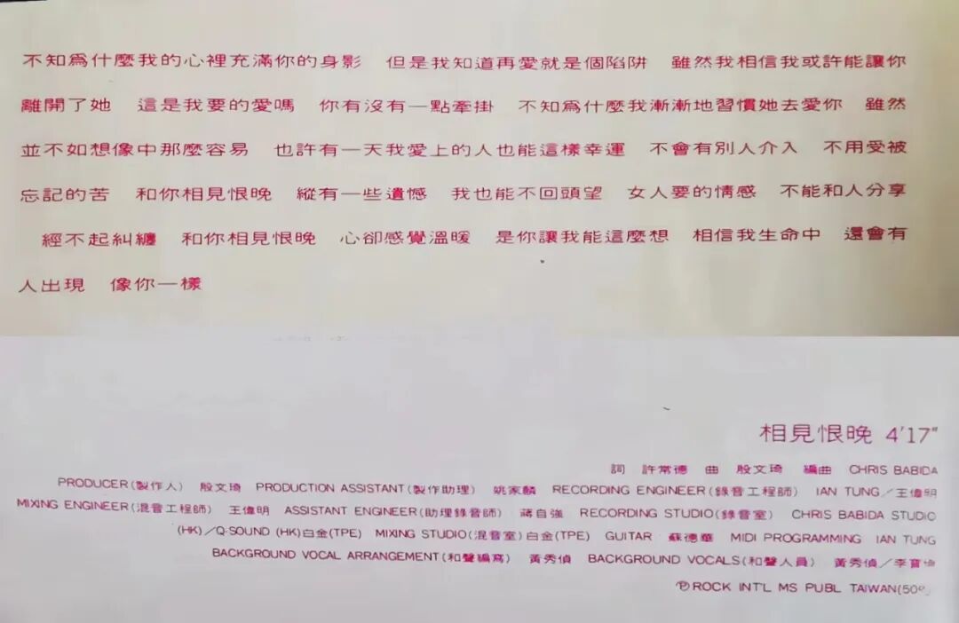 歌词《相见恨晚》(上图)